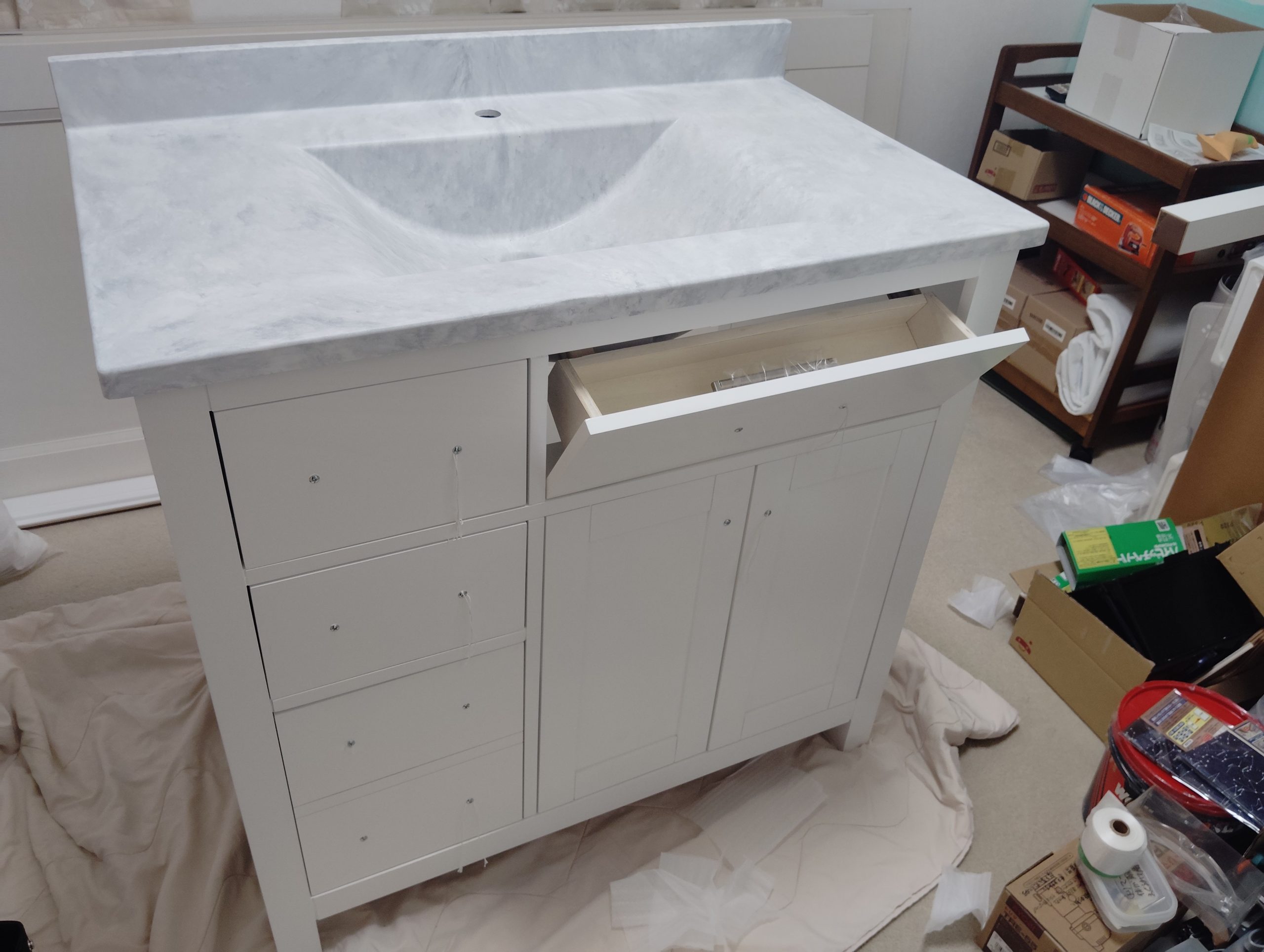 洗面キャビネットと洗面シンク、無事に届きました。パレット貨物を自宅で受け取るのは初めての経験で、どきどきしました。丁寧にきれいに送っていただき、ありがとうございました! たいへん感謝しております。今後ともどうぞよろしくお願いいたします。