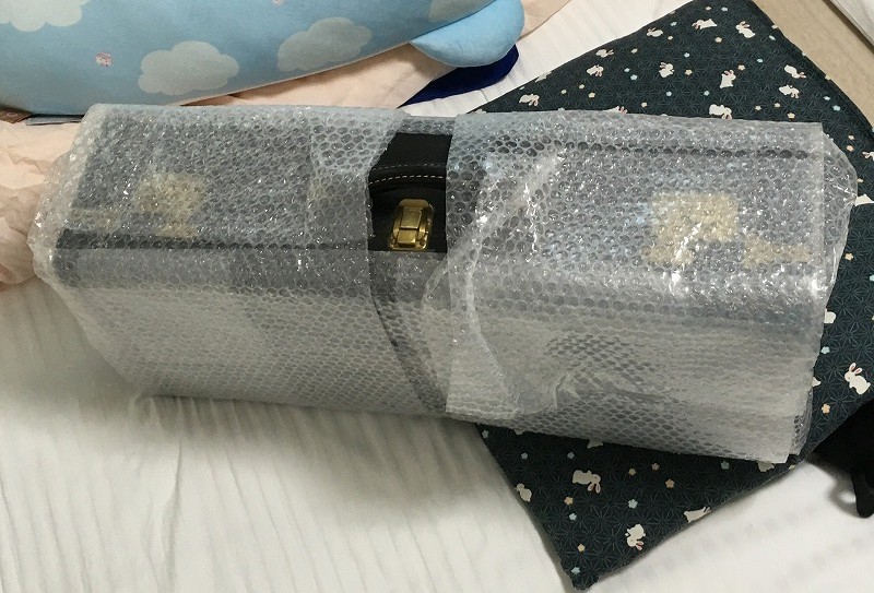 緩衝材が詰められ、輸送の衝撃に耐えれるようしっかりと梱包されて日本国内に届きました。